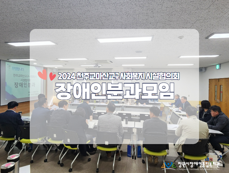 3월22일(금) 창원시장애인종합복지관에서는 2024년 천주교마산교구사회복지시설협의회 장애인분과 상반기 모임을실시했습니다.창원시장애인종합복지관의 사업소개 및 기관 라운딩을 시작으로 각 참석기관 소개시간을 가졌습니다. 이날 모임은 장애인분과 소속 14개시설(26명)이 참석하여 2024년 장애인분과 사업계획논의와 각 시설 현안 및 기타안건을의논하였습니다.우리 복...
