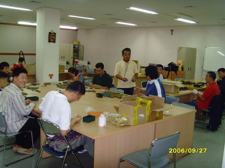 김해 진영 소재의 (주)중앙과 창원시장애인종합복지관의 협의로 제품(단자대 5901)을 하청받아 주 1,000개<br />