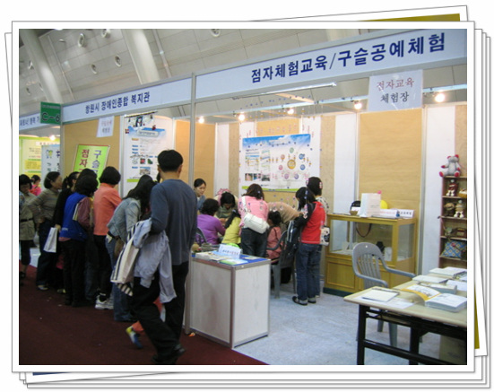 10월 27~28일 이틀간 창원컨벤션센터에서 열린 창원평생학습축제 장애인 프로그램 경진대회 그동안 갈고 닦은 기량을 마음껏 선보였으며 창원시장애인 복지관 보호작업훈련생들로 구성된 총20명의 정신지체 장애인 풍물반은 매주 창원시장애인종합복지관