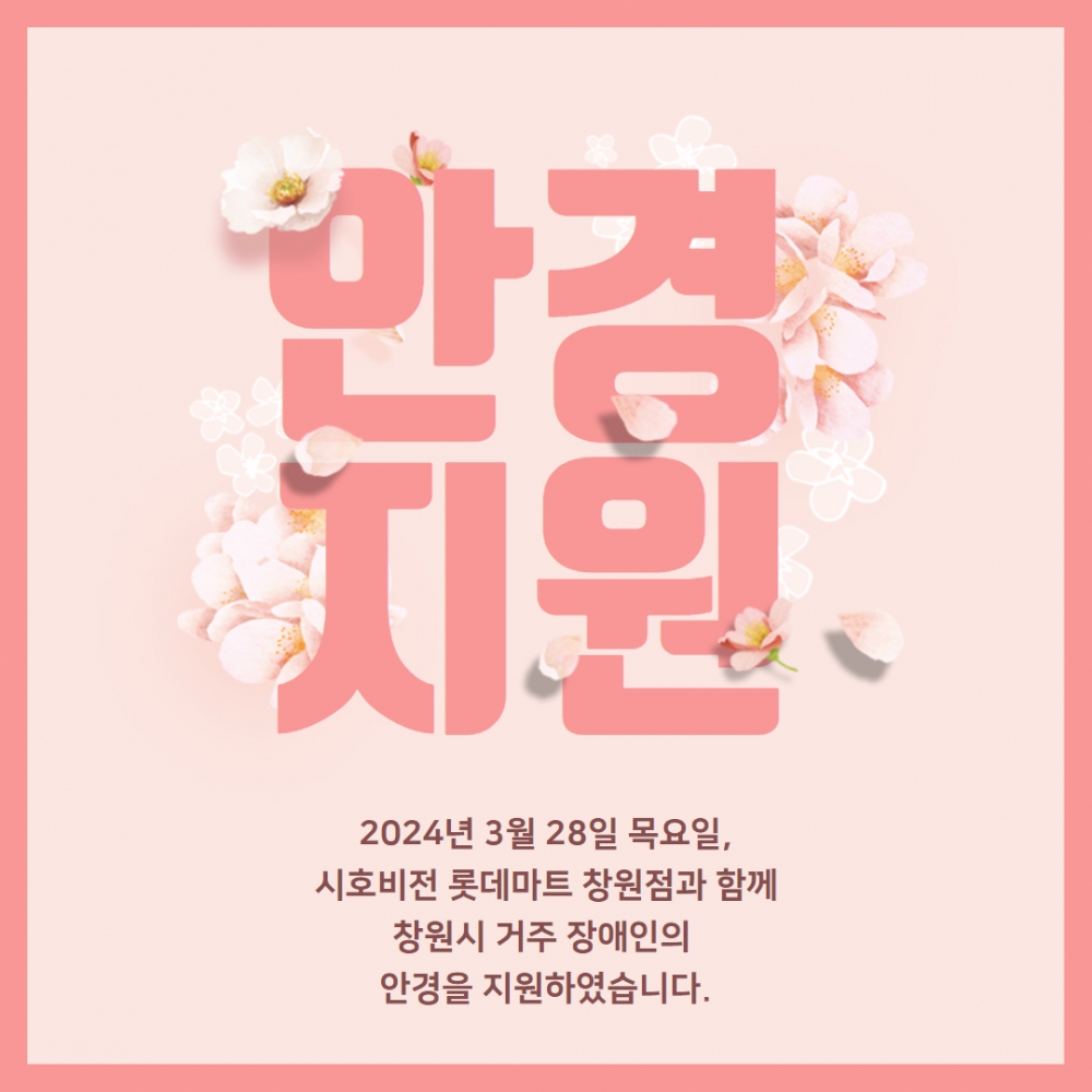 2024년 3월 안경지원 페이지 정보 작성자 박성현 댓글 0건 조회 1,524회 작성일 24-03-28 18:00 본문 2024년 3월 28일 목요일, 창원시 거주 3명의 장애인에게 안경을 지원하였습니다.변함없이 지원에 힘써주시는 롯데마트 시호비전 창원점 사장님께 감사드립니다. 이전글제21회 전국장애인동계체육대회 참가 결과 홍보 24.03.29 다음글창원보건소와 함께하는 대사증후군 캠페인 행사 진행 24.03.28 목록 댓글목록 댓글목록 등록된 댓글이 없습니다.