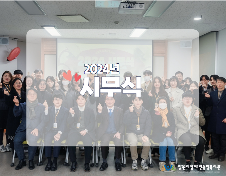 긴연휴를 마치고 온 1월2일(화) 창원시장애인종합복지관에서는 힘찬 한해를 맞는 시무식을 실시했습니다 :)2024년 갑진년 새해를 맞은 직원들. 상호간의 새해인사로 시작해보았습니다.새해를 맞아 반가운 수상소식도 있었습니다.기획운영지원팀 안선동 팀장님의 "법인감사패" 수여와, 지역사회개발팀 박성현사회복지사의 "올해의 관리인증요원"인증패 전달식을 진행하였습니다....