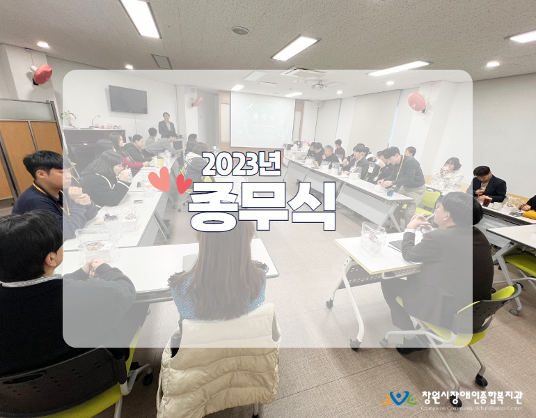 복지관에서는 2023년 한 해를 마무리하는 종무식을 12월 21일에 실시하였습니다. 창원시장애인종합복지관과 장애인복지 증진을 위해 애써준 모든 직원여러분들의 수고에 감사를 표하며 화기애애한 분위기속에서 진행되었습니다:)2023년 송영 동영상을 다 함께 감상하며 우리의 지난 노고와 새로운 각오도 다지는 시간을 만들었습니다.어러운 여건속에서도 장애인복지증진을 ...
