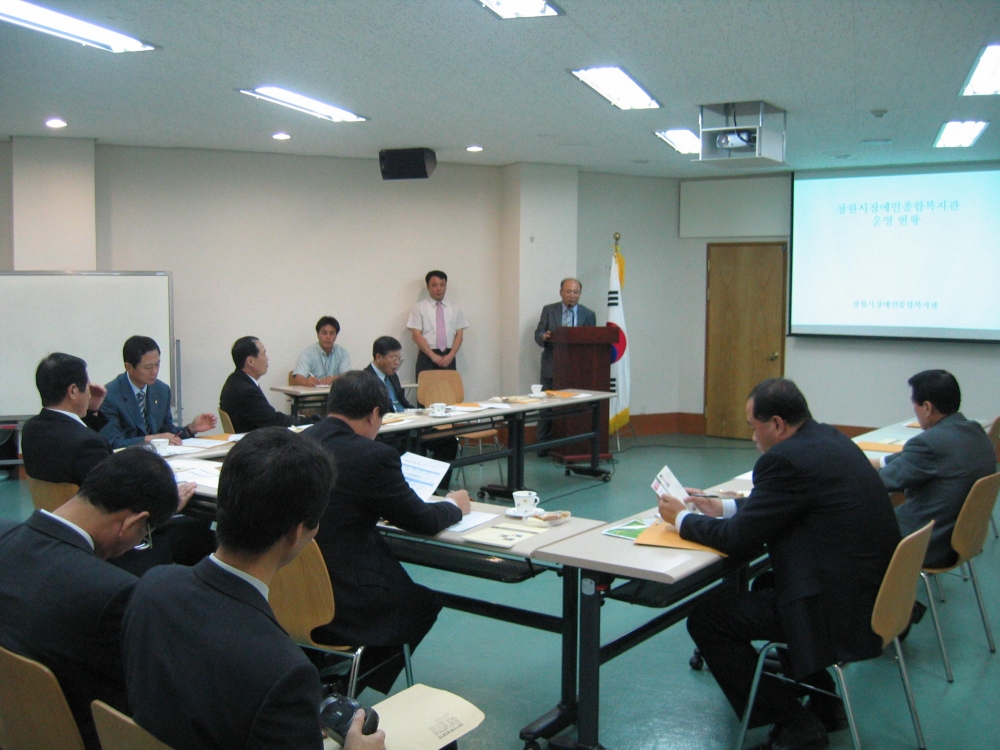 창원시의회 총무위원회 윤병도의원님을 비롯한 시의회 의원 여섯 분이 우리 복지관을 방문하였습니다. 의원님들은 복지관 운영현황 설명을 듣고 우리 복지관 직원들에게 장애인을 위한 아낌없는 격려와 당부를 하였으며 설명회 이후 시설 견학이 있었습니다.<br />