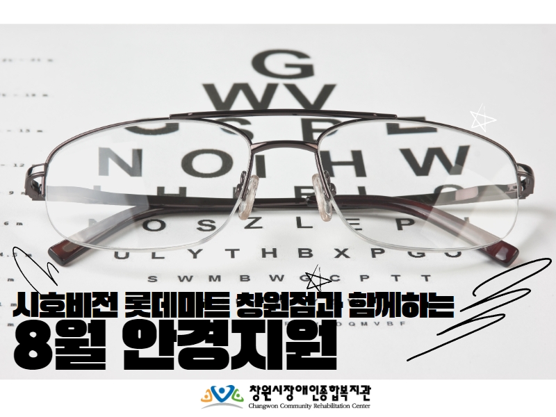 7월 시호비전 롯데마트 창원점과 함께 안경지원이 실시되었습니다. '눈'은 우리 몸 중 알게 모르게 우리가 가장 많이 의지하고 있는 기관이기도 합니다.이번 안경지원을 통해 눈 건강 상태를 알고, 그에 맞는 안경을 지원받을 수 있었습니다.안경지원에 힘써주신 시호비전 롯데마트 창원점 사장님께 감사드립니다. 창원시장애인종합복지관에서는 매월 지역 내 거주하는 ...