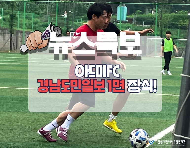 우리 복지관의 자랑,창원시장애인종합복지관의 아드미 FC가 이번에는 경남 도민일보 1면을 장식했습니다!바로 장애인, 비장애인이 함께 뛰는 통합 축구팀 경남FC활동과 선수, 감독 인터뷰 등이 실려있는데요, 우리선수들의 열정과 땀으로 이루어낸 성과가 아닌가 싶습니다 :)실제로 장애인과 비장애인 통합 축구팀, 경남FC통합축구단의 경기를 보고 응원해주시는 지정후원단...