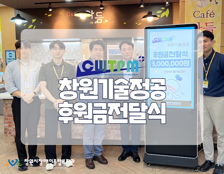 7월 18일(화) 창원기술정공(대표 오병후)은 창원시장애인종합복지관(관장 송호도)을 방문하여 장애인복지 기금 300만 원지정후원금 전달식을 가졌습니다.창원기술정공 오병후 대표는 “폭우와 폭염 속 장애인분들의 건강관리와 안전에 특히 신경 써줄 것을 당부하며 무사히 여름을 날 수 있도록 힘을 보태겠다.”라며 지속적으로 지역의 장애인복지에 관심을 가지겠다고 전했...