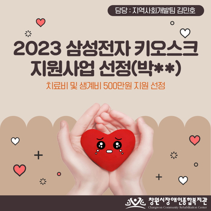 2023년 삼성전자 키오스크 치료비 및 생계비 지원사업업 대상자로 복지관 사례관리 대상자 가정이 선정되었습니다.