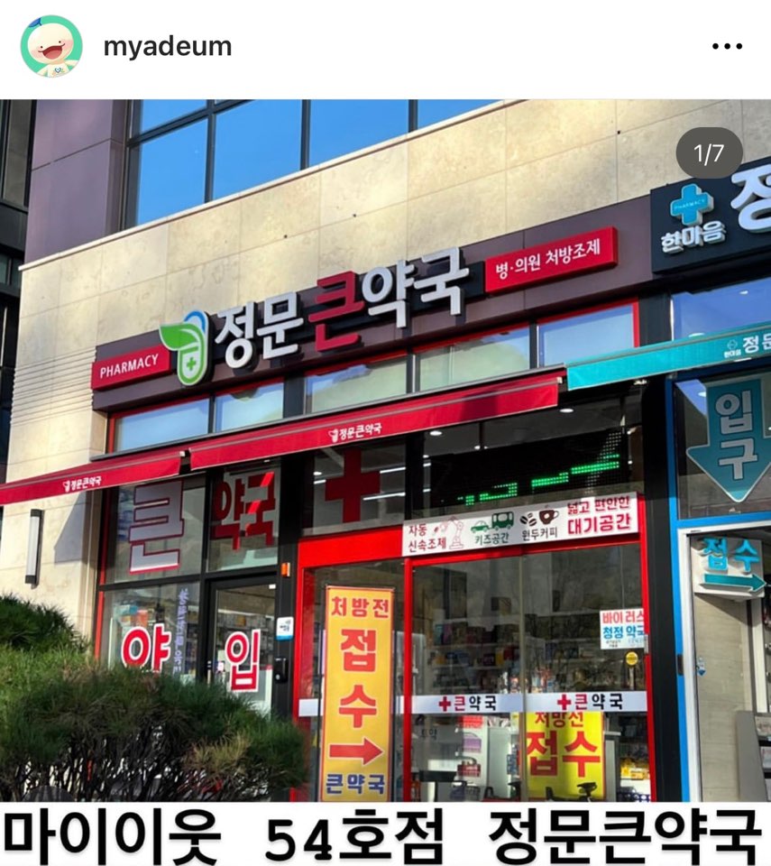 나눔으로 실천하는 마음이 이쁜 마이이웃, 54호점을 소개해드립니다앞으로도 마이이웃가게에 많은 관심부탁드려요 :)창원한마음병원 정문 앞에는 착한약국이 있답니다. 나눔으로 실천하고 있는 정문큰약국이 바로 그 주인공!이름처럼 한마음병원 앞 길건너에 위치하고 있어요~내부에는 다양한 의약품들이 있었고 넓고 직원분들도 많아 친철하고 빠른응대가 너무 좋았답니다~처방전을...