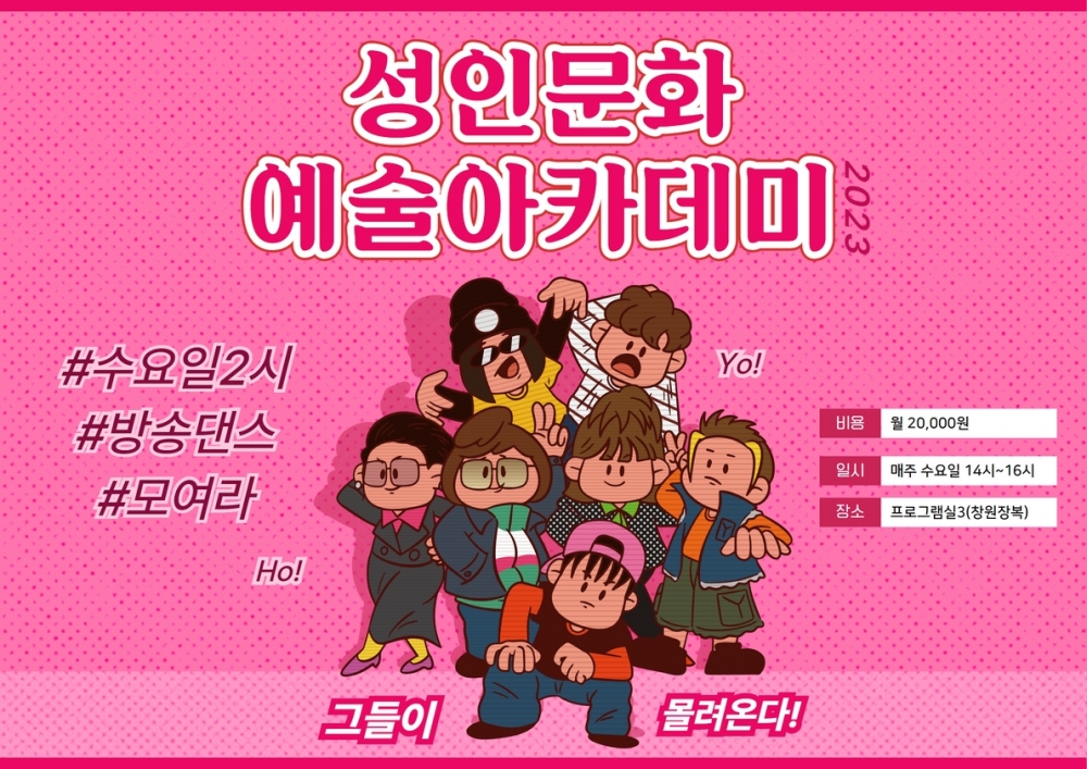 성인문화예술아카데미 방송댄스교실 페이지 정보 작성자 유세영 댓글 0건 조회 2,993회 작성일 23-02-24 17:50 본문 매주 수요일 2시! 방송댄스교실이 열립니다~굳은 몸을 풀어주고, 다양한 음악들과 함께하는 성인문화예술아카데미 방송댄스교실!참여자들 모두 즐기고 한 주동안 오매불망 기다리는 시간이랍니다.신나는 트로트부터 뉴진스까지!관객들 앞, 무대 위에서 춤을 추는 그날까지 열심히 배워갈 참여자들을 응원해주세요~ 이전글2023년 상반기 장애인활동지원사업 부정수급예방교육 실시 23.02.24 다음글장애인활동지원사업 우수 활동지원사 포상 수여식 23.02.24 목록 댓글목록 댓글목록 등록된 댓글이 없습니다.