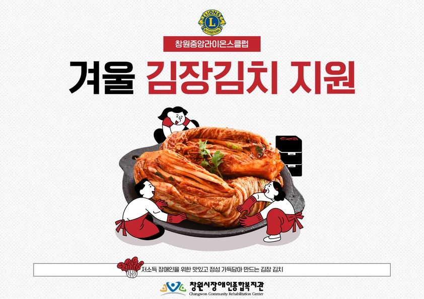 지난 12월 2일과 3일창원중앙라이온스클럽에서 복지관을 방문하였습니다.많은 분들이 모이신 이유는 저소득 장애인 분들의 든든한 겨울을 위한 김장김치를 하기 위해서인데요.날씨가 추운 날이었지만 정성스럽게 양념을 하고 절이고 포장하기까지 이틀에 걸쳐 진행헀습니다.정성 가득한 김장김치는 당일부터 순차적으로 이용자 분들께 배분하였습니다.후원 뿐만 아니라 직접 김장...