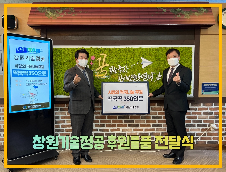 창원기술정공(대표 오병후)에서 이번 설 명절을 맞아 창원시장애인종합복지관을 방문하여 사랑의 떡국나눔 행사에 쓰일 떡국떡 350인분을 후원해주셨습니다.덕분에 지역장애인, 복지관 이용자 그리고 창원지역의 장애인협회 및 관련기관분들 등 약 350여명의 방문자에게 따뜻한 떡국을 대접해드릴수있었습니다.오랜만에 복지관이 다시 활기를 찾고 이용자분들을 다시 모실수있어 ...