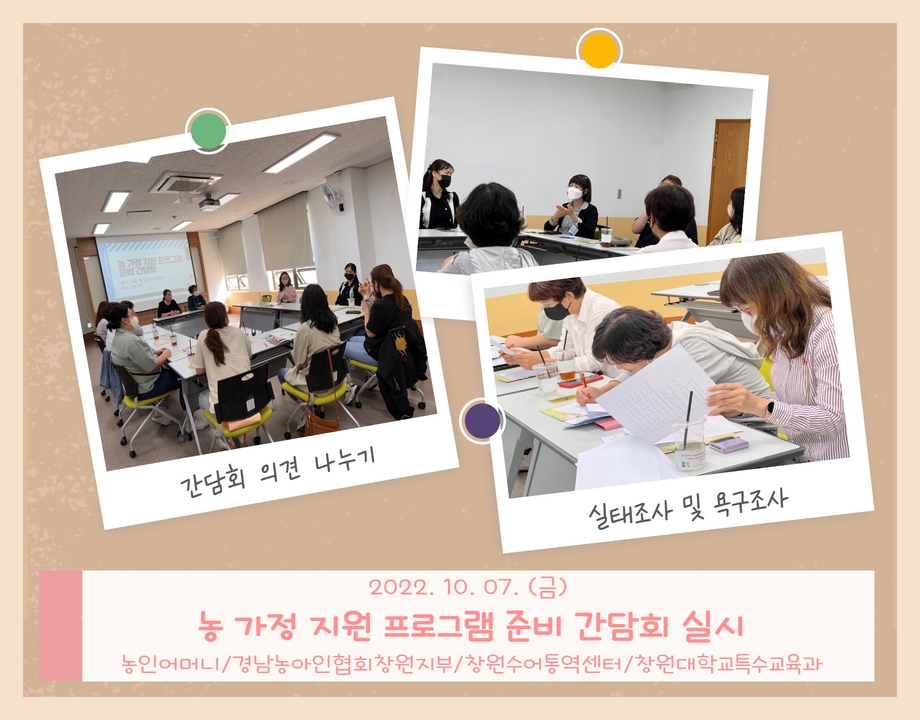 농 가정 지원 프로그램 준비 간담회 개최 유세영|2022-10-26 10:36:46|3154