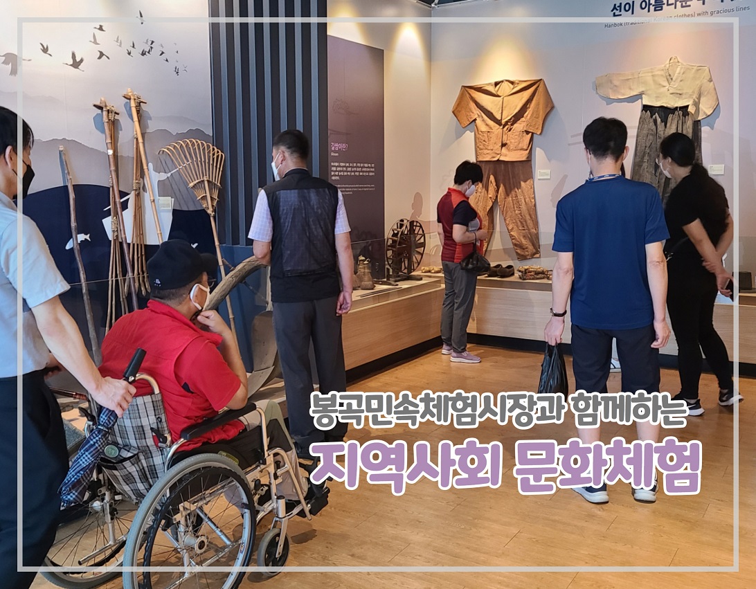 지난 8월 17일 봉곡민속체험시장 상인회와 "지역사회 문화체험"을 진행하였습니다. 봉곡민속체험시장은 저희 복지관과 인연이 깊은 곳인데요, 시장 내 마이이웃가게들도 많이 있고, 봉곡민속체험시장 상인회에서 후원금도 전달해 주고 있습니다. 이번에는 지역 내 장애인분들과 지역사회 문화체험을 함께 하였습니다. 문화관광해...