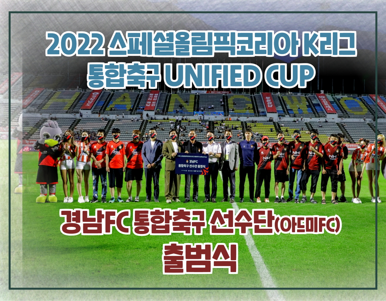 장애인-비장애인 한 팀 이뤄오는 8월 10월 전국대회 출전 아드미 축구단이 경남FC 통합축구단으로 2022 스페셜올림픽 K리그 통합축구대회(유니파이드 컵) 선수단 출정식을 26일 홈경기장인 창원축구센터에서 진행했다. 출정식에는 경남FC 박진관 대표이사, 배기종 코치, 송호도 창원시장애인종합복지관 국장, 유홍율 체육지원팀장, 김성재 창원아드미FC 감독 등이...
