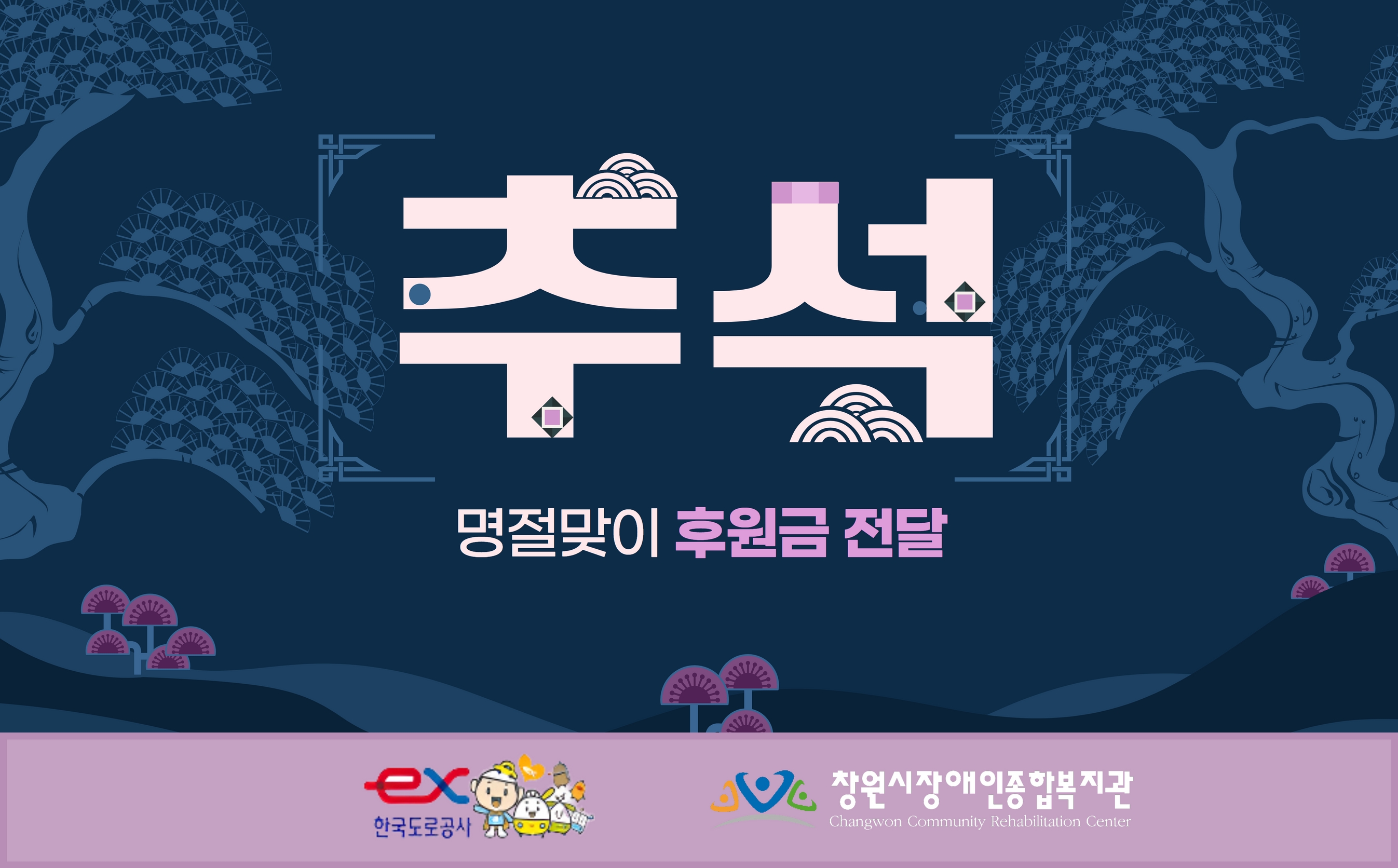 추석을 앞둔 지난 9월 6일 화요일태풍에도 비를 뚫고 후원금 전달을 위해 한국도로공사 창원지사에서 방문해주셨습니다.매 명절마다 복지관과 지역장애인 분들에 대한 관심을 꾸준히 가져주셔서 감사합니다.꾸준한 관심에 더 힘입어 지역 장애인 분들을 위하여 열심히 움직이는 복지관이 되겠습니다 :)