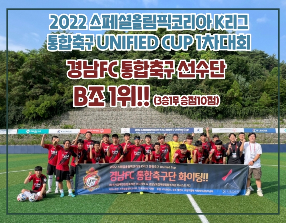- 경남FC 통합축구단, 2022 스페셜올림픽 K리그 통합축구 유니파이드컵 1차 대회 3승 1무(조 1위)