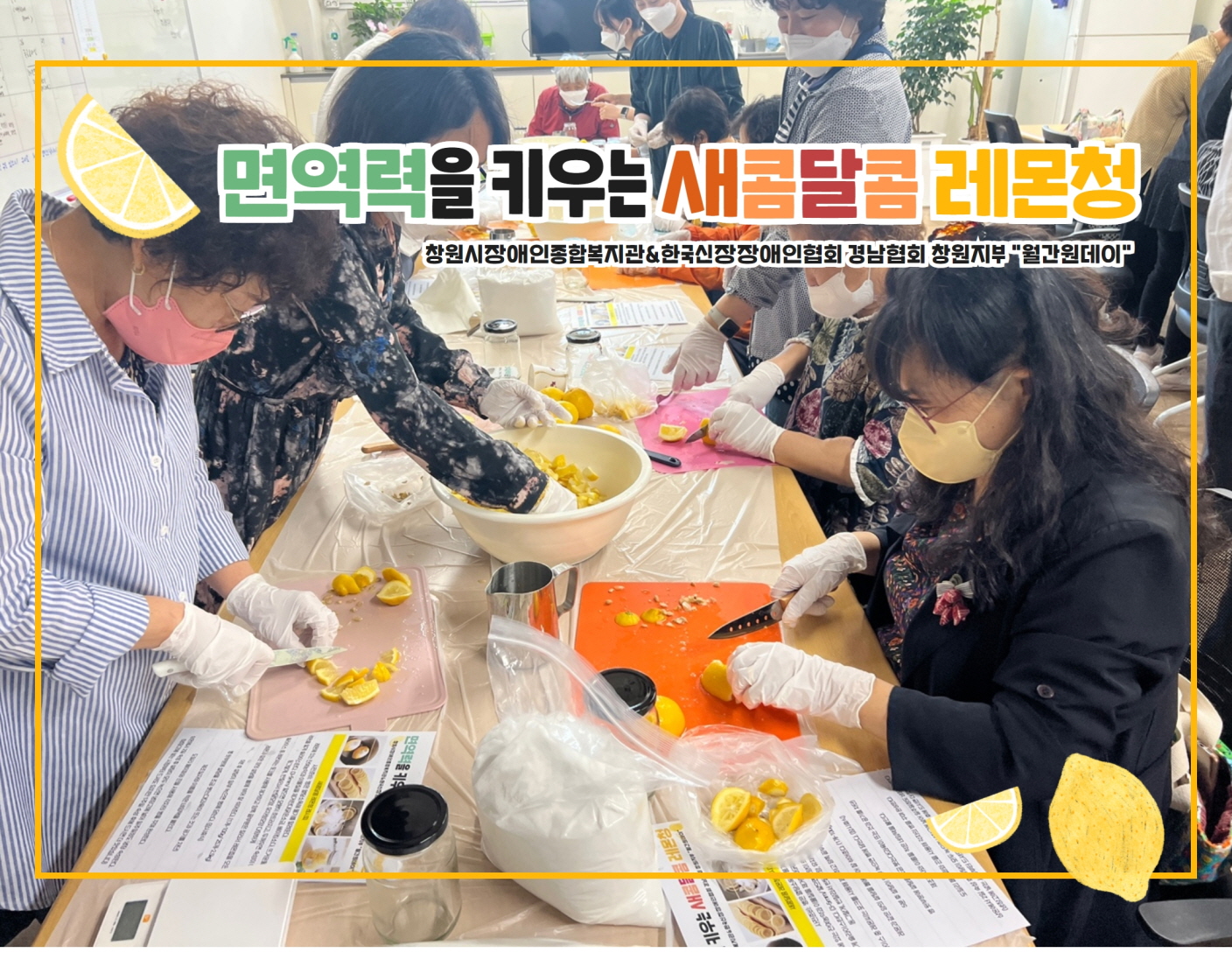 가정의 달 5월! 가족문화지원팀에서는 아주 다양한 사업들을 펼쳤는데요, 그 중 새로이 시작된 "월간원데이"소식 전해드리겠습니다.슬슬~ 더위가 시작되는 요즘 지치기쉬운 이 계절에 걸맞는! 새콤달콤 수제청만들기!를 계획해보았습니다. ^0^사실 청 만들기를 핑계로 신장협회 회원분들과 창원시장애인종합복지관 직원, 봉사자가 함께 대화나누며 즐거운 시간을 보내고 ...