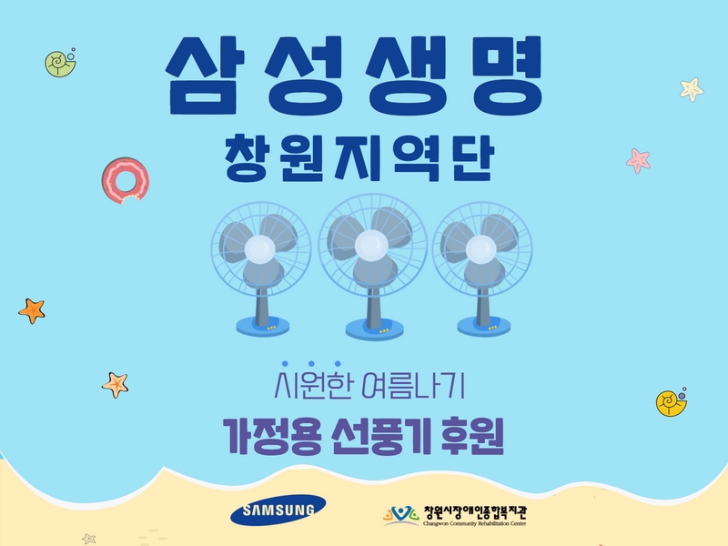 지난 주 목요일인 6월 16일! 복지관에 여름을 위한 선물들이 도착했습니다.삼성생명 창원지역단에서 가정용 선풍기 10대를 후원해주셨습니다~매번 복지관에 필요한 것은 없는지 먼저 확인해 상황에 맞춘 후원으로 큰 도움을 주고 계신 삼성생명 창원지역단 !이번에도 무더워지기 직전! 필요한 순간에 나타나 귀한 나눔으로 함께해주셨습니다.후원해주신 선풍기들은 장애인 분...