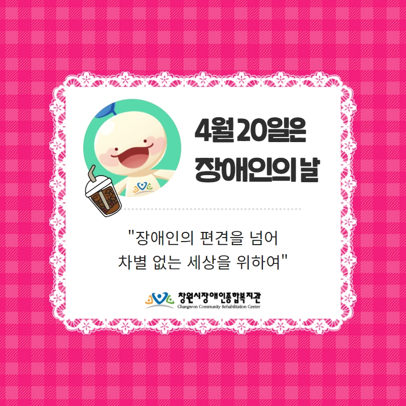 창원시장애인종합복지관에서는 4월20일! 제42회 장애인의 날을 맞아 지역사회에 찾아가 장애인의 날을 알리고 그 의미를 되새기는 시간을 가졌습니다. 거리두기 제한이 완화되어 우리복지관도 의미있는 날을 맞아 조심스럽게 지역사회와 함께하는 행사를 진행해보았답니다. ^0^ 봉곡시장 상인회와 연계하여 시장상인분들과 지역주민들께 장애인의 날을 알리고 복지관에서 준비한...