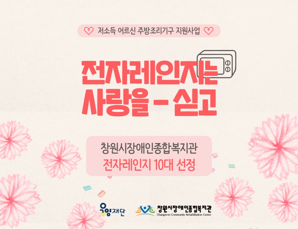 안녕하세요 :)창원시장애인종합복지관에서는 이용자분들을 지원하기 위한 다양한 공모사업에 도전하고 있는데요 !우양재단에서 지원하는 "저소득 어르신 주방조리기구(전자레인지) 지원사업" 에 우리 복지관이 최종 선정 되었다는 소식을 알려드립니다 :) 전자레인지가 없거나, 노후된 전자레인지를 사용하여 안전이 염려되었던 노인 장애인 분들이조금이라도 안전한 방법으로 따뜻...