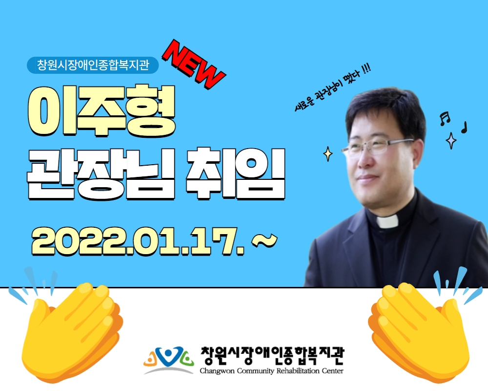 2022년 1월 17일(월) 바로 오늘 !창원시장애인종합복지관과 함께하실 새로운 관장님이 취임하셨습니다.새로 부임하신 이주형 예로니모 관장님과 함께 환영인사를 나누며 전체 직원회의를 진행하였는데요 !코로나19로 인해 제대로 얼굴을 뵙지 못하였지만, 마스크를 뚫고 인자한 느낌이 물씬 풍기는 멋진 분이시더라구요 :)우리 복지관 이용자분들과 그 가족분들, 그리...