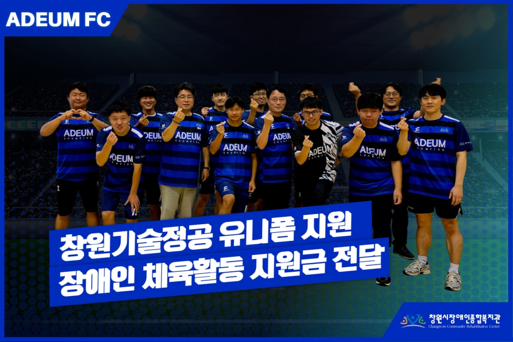 창원기술정공 유니폼 지원, 장애인 체육활동 지원금 300만원 전달 페이지 정보 작성자 박성현 댓글 0건 조회 740회 작성일 25-08-08 11:47 본문 8월 5일 화요일 창원기술정공 오병후 대표님께서 복지관을 방문하여 복지관 소속 아듬FC 이용인을 격려하며 새로운 유니폼과 함께 장애인 체육활동 지원금 300만원을 전달하였습니다.전달식 후 선수들을 직접 만나 격려 및 응원의 말씀을 해 주셨습니다.아듬FC 선수들이 새로운 유니폼을 입고 더 멋진 활약을 할 수 있도록 많은 응원 부탁드립니다.후원해주신 오병후 창원기술정공 대표님께 다시 한번 감사드립니다. 관련링크 https://www.koreadisablednews.com/news/articleView.html?idxno=35576 334회 연결 이전글경남 장애인 슐런동호회, 100만원 상당의 슐런보드 기증 25.08.11 다음글7월 찾아가는 차량무상점검 실시 25.08.05 목록 댓글목록 댓글목록 등록된 댓글이 없습니다.