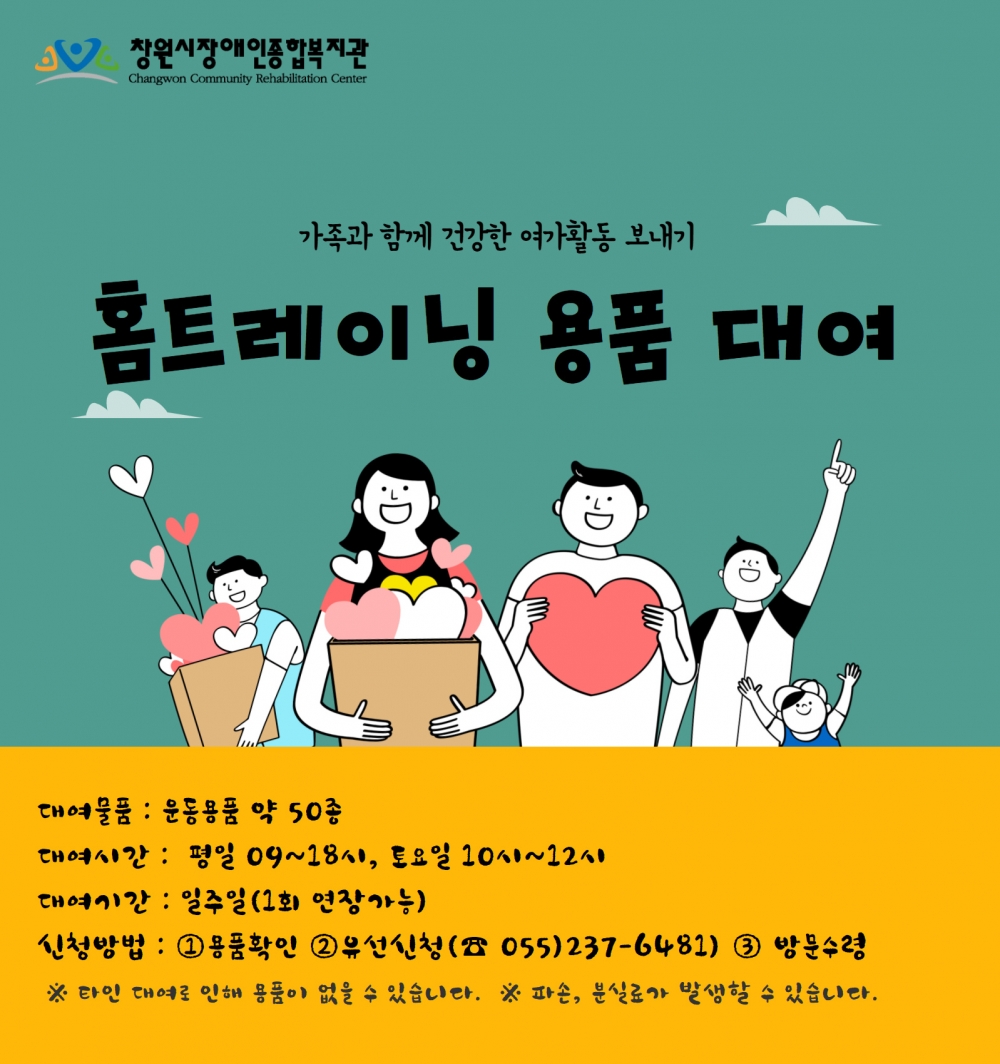 가족과 함께 건강한 여가활동 보내기 [홈트레이닝 용품 대여] 안내입니다.