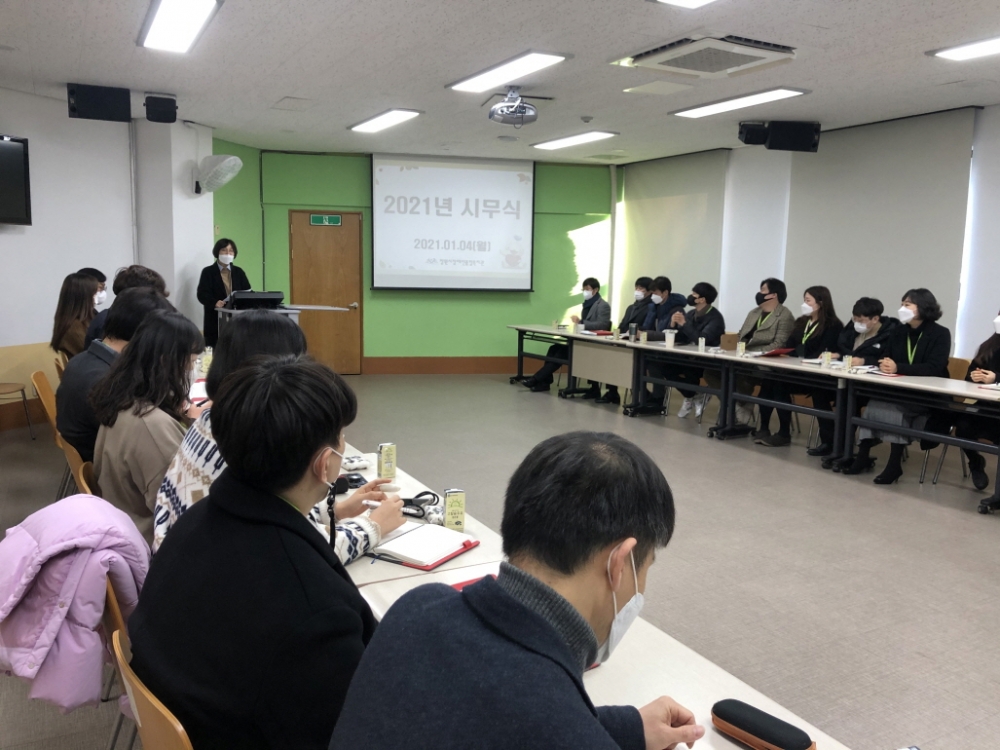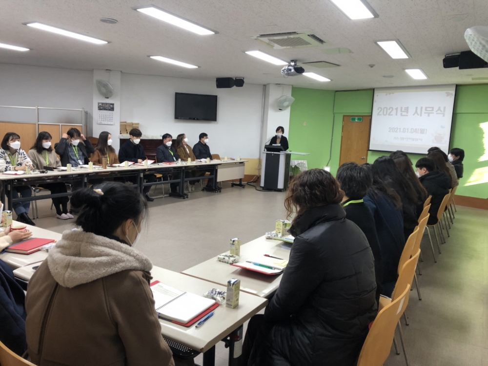 1월을 시작하는 월요일에 전 직원이 한자리에 모여 시무식을 진행하였습니다
