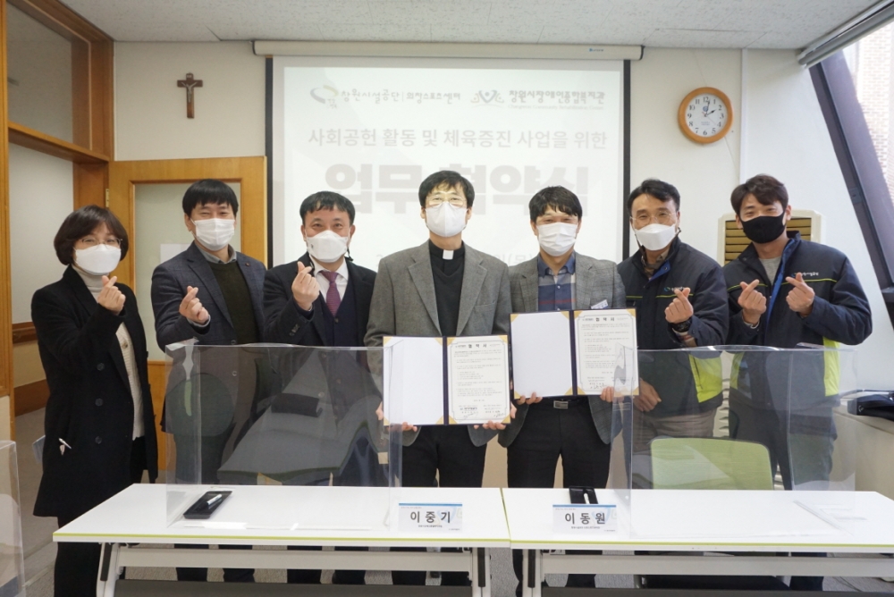 ○ 14일(목), 창원시장애인종합복지관(관장 이중기)은 창원시설공단 의창스포츠센터(센터장 이동원)와 지역사회 사회공헌 활동 및 체육증진 사업을 위한 업무협약식을 복지관에서 진행하였습니다.