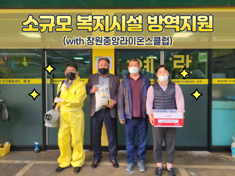 안녕하세요 :) 창원시장애인종합복지관입니다.우리 복지관은, 코로나19 사태로 인하여 주기적으로 자체 방역을 진행하고 있는데요, 하지만 방역 물품들을 구비하고 있지 못한 소규모 장애인 복지시설들은 주기적인 방역이 어려운 상황입니다.. 그래서 우리 복지관에서는 11월 2일(월)을 기점으로 창원지역 소규모 장애인 복지시설 대상의 방역지원사업을 새로 시작하였...