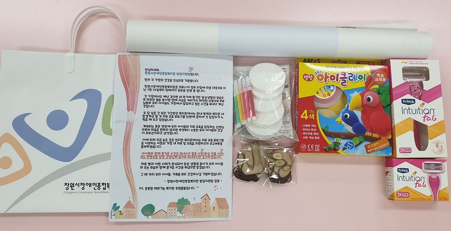 이번 코로나19 관련해서 전파 방지를 위한 적극적인 방역과 사회적 거리두기의 일환으로 창원시장애인종합복지관(관장 이중기)은 지난 2월 24일부터 복지관 내 프로그램이 일시적으로 중지되었습니다. 그로 인한 치료 교육 지원의 공백으로 복지관 내 프로그램 아동을 대상으로 하여 "가정 내 교육지원 KIT(아동 놀이 활동 지원기구)"를 마련하여 지난 한 주동...