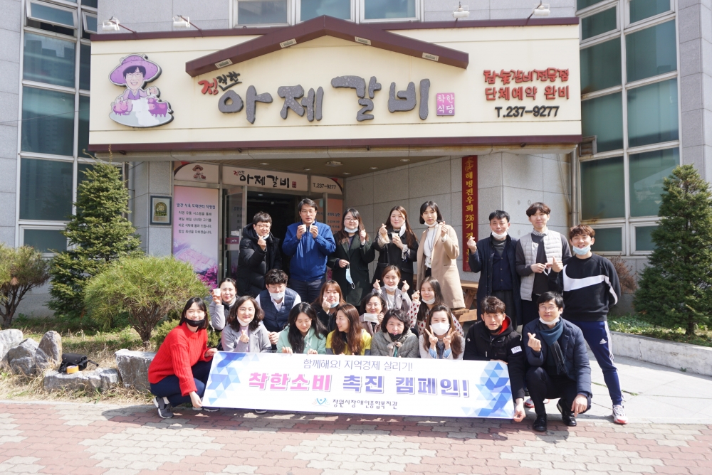 단체손님의 주인공은 다름 아닌 창원시장애인종합복지관 직원들로 이중기 관장의 제안에 따라 20여명이 이날 점심식사를 정직한아제갈비에서 함께하며 착한소비에 나섰습니다.