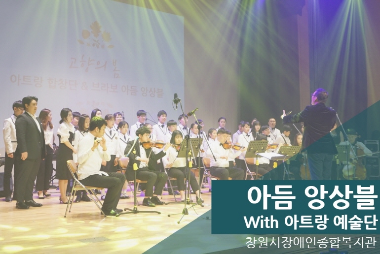 2019년 11월 26일(화) 오후 3시,경상남도 도청 신관 1층 대강당에서 콘서트가 열렸습니다:)바로 (주)아트랑 예술단이 주최하는 장애인식개선 콘서트 였는데요,우리 창원시장애인종합복지관 소속 공연팀인 아듬 앙상블팀도(주)아트랑 예술단의 초대를 받고 게스트 무대에 참석했습니다.아트랑 예술단의 힘찬 공연!율동까지 곁들여지니 더욱 볼거리가 풍성...