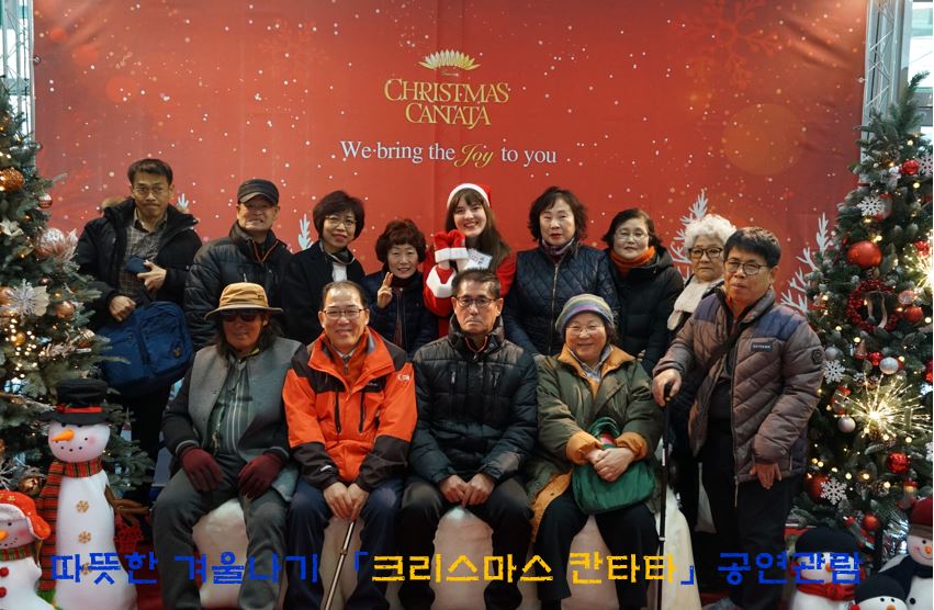 우리복지관에서는 지난 12월 5일(목), 성산아트홀대극장에서 크리스마스 칸타타 공연을 관람하였습니다. 연말연시를 맞이하여 지역에 홀로지내는 장애인분들과 「크리스마스 칸타타」공연관람으로 외로움 및 문화소외감을 해소하고, 공연의 따뜻한 메세지 전달로 심리적 안정과 치유의 시간을 가졌습니다. 먼저, 공연 시작하기 전 해장국으로 따뜻한 점심을 함께 먹었습니다.^...