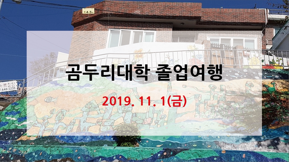 꽃향기 가득하고 햇살도 따사로왔던 3월에 시작한 곰두리대학이싱그러운 녹음의 계절을 지나 어느덧 마지막이 다가오고 있습니다. 8개월의 긴 교육과정을 성실히 참여하고 마지막까지 최선을 다해 주고 있는 교육생들을 위하여수료를 앞두고 졸업여행을 다녀왔습니다. 곰두리대학? 장애인과 장애인가족이 함께하는 문화여가프로그램으로 올해로 13기를 맞이하고 있는우리복지관 대...