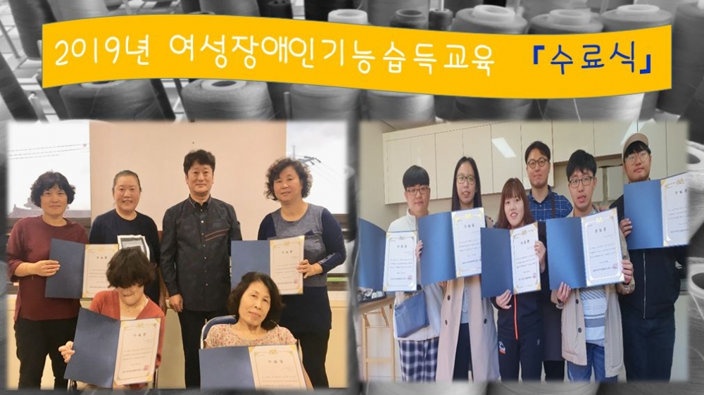 올해 4월부터 진행되었던 '2019년 여성장애인기능습득교육'이 마무리되어 수료식이 진행되었습니다.