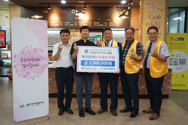 창원시장애인종합복지관(관장 이중기)은 국제라이온스협회 355-C지구 창원중앙라이온스로부터 2,000,000원 상당의 목욕쿠폰을 지원받아 전달식을 진행했다. 이 번 후원은 북면 마금산 원탕 목욕쿠폰으로 매월 30장씩 복지관 재가장애인에게 지원할 예정이다. 국제라이온스협회 355-C지구 창원중앙라이온스는 2017년 12월 1억이상 고액기부자 모임...