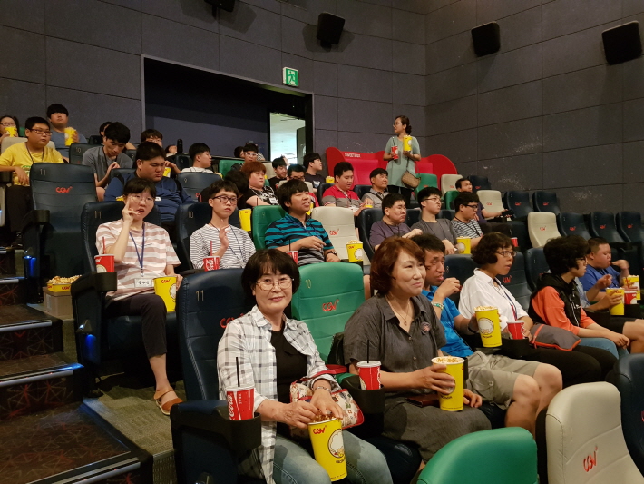 지난 6월 28(금), 창원시티세븐 CGV에서 ‘2019년 곰두리대학 문화체험’ 활동으로 프로그램 이용자 및 가족 43명과 함께 영화관람 (롱리브더킹 목포영웅)을 진행하였습니다. 무더운 여름 초입날 가족들과 함께 시원한 영화관에서 웃으며 즐거운 시간으로 사회활동 및 양육에 대한 스트레스 해소, 가족간의 갈등 완화하는 시간을 가졌습니다. 우리 복지관에서...