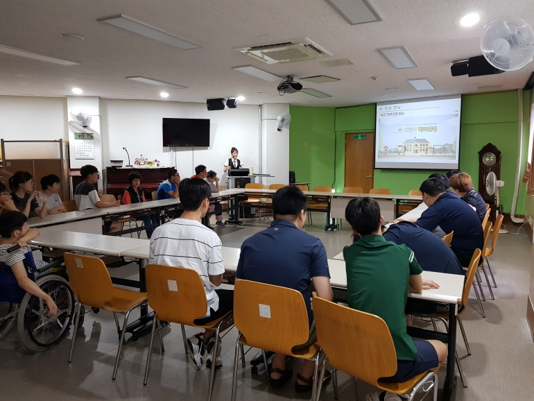 7월 30일 화요일 아듬나래 훈련생들의 출/퇴근길 안전을 위한 교통안전교육이 복지관 2층 강당에서 실시되었습니다.
