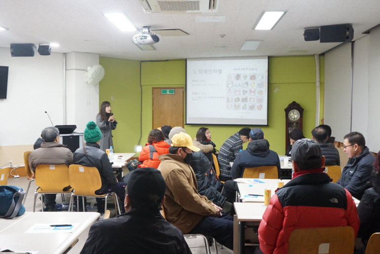 설명회에서는 복지관 재가복지서비스에 대한 개괄적인 소개와 운영방안, 이용절차 안내, 그리고 장애인 인권교육이 시행되었습니다.