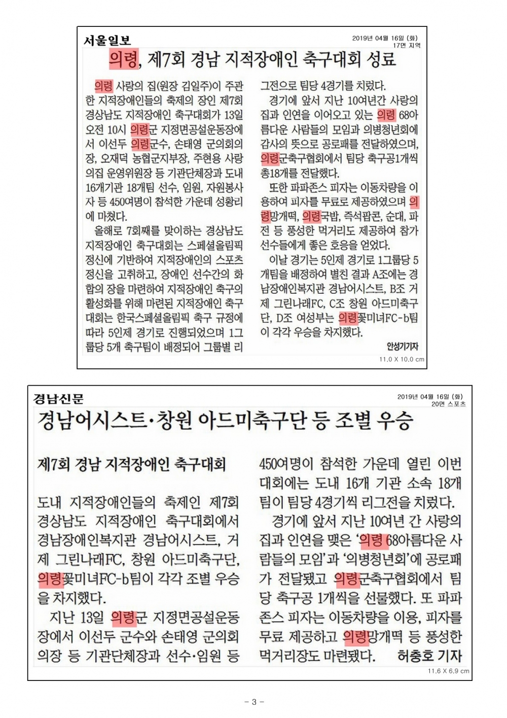 2019년 4월 13일(토) [제7회 경남지적장애인축구대회 참가]