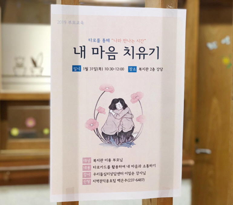 2019.01.31.(화) 2018 방과후교실 오리엔테이션 및 부모교육 지난 31일 지역권익옹호팀에서는 초등, 중등,고등부 방과후교실,쿠킹교실,직업체험 및 사회성향상교실, 커피취미교실의 오리엔테이션 및 부모교육을 실시하였습니다. 방과후교실 연간 프로그램 계획 안내 및 욕구조사, 개인정보활용동의, 서비스 계약서 등을 작성하였고 부모님들의 욕구를 ...