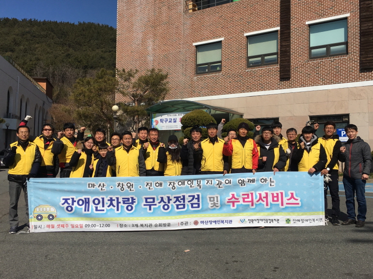 [ 2019.02.17.(일) 장애인 차량무상점검 및 수리서비스 실시 ]지난 2월 17일(일) 오전 9시~12시, 복지관 앞마당에서는창원시 3개(마산, 창원, 진해) 복지관 공동사업 일환으로 매년 실시되고 있는 장애인 차량무상점검 서비스가 진행되었습니다.매년 다양한 연령대의 봉사회원분들의 적극적인 참여로, 이번 차량무상점검 역시 활기찬 분위기 속에서...