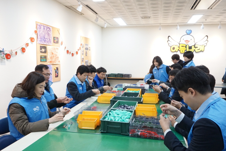 이날 참석한 우리은행 임직원 모두가 함께 보호작업장으로 이동하여 볼펜조립작업 봉사활동까지 마치셨습니다.