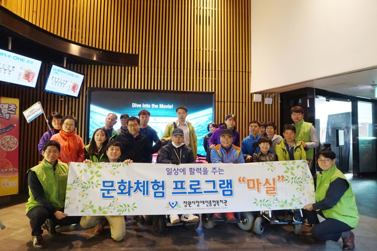 장애인을 대상으로 창원 시티세븐 CGV에서 영화관람 및 식사를 지원하는 행사를 진행했습니다.
