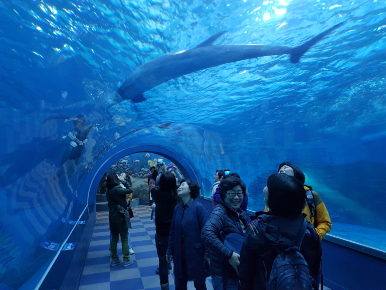 지난31일(수), 창원시장애인종합복지관에서는 올 한해 복지관의 원만한 사업진행을 위해 보이지 않는 곳에서 고생해주신 자원봉사자분들과 함께 '2018자원봉사자와 함께하는아름다운 동행'을 다녀왔습니다. 첫번째로 울산 십리대밭에 가서 노랗게 물든 국화와 알록달록 다양한 색을 뽐내는 코스모스와 함께 사진도 찍고 이야기도 나누며 봉사자분들과 즐거운 시간을 가졌습니다. 이후에는 장생포고래생태체험관을 방문하여 돌고래 먹이주기, 수족관에서 사는 다양한 물고기들을 보면서 즐거운 시간을 보냈습니다.