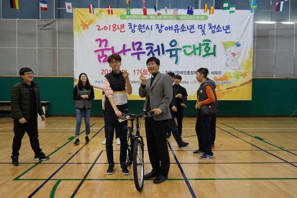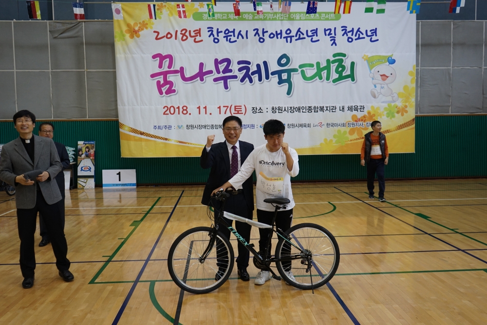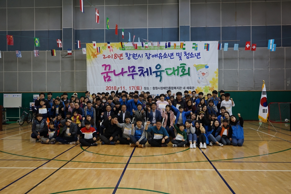 2018년 「창원시」장애유소년 및 청소년 꿈나무체육대회 홍보 대 상 : 발달장애아동, 청소년, 성인장애인 일 시 : 2018. 11. 17(토) 09:00 ~ 16:00 장 소 : 창원시장애인종합복지관 內 체육관 인 원 : 202명(선수 50명, 보호자 74, 자원봉사자 66, 관리자 및 운영요원 12명) 내 용 : 꿈나무체육대회 주최/주관 : 창원시장애인종합복지관 후 원 : 창원시, 창원시체육회 협력기관 : 킹바이크, 경남대학교 체육·예술 재능기부사업단