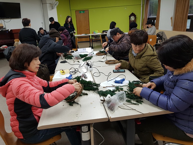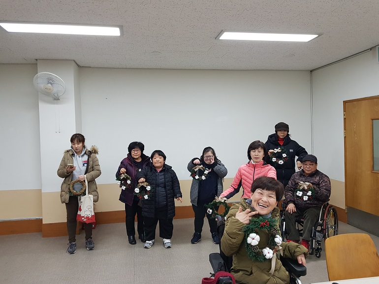 12월 11일 화요일 창원지역 장애인 및 가족들의 여가문화를 지원하고 있는 곰두리대학에서 일일특강으로 꽃꽂이를 진행하였습니다.