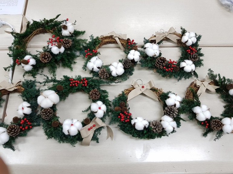 참석자 모두가 자신이 원하는 리스를 만들고 꽃 사진 찍기, 가정에서 리스 장식하는 방법을 배워보는 즐거운 시간이었습니다. 가정에서 크리스마스장식, 벽면장식 등으로 연출하여 따뜻한 겨울 보내세요.