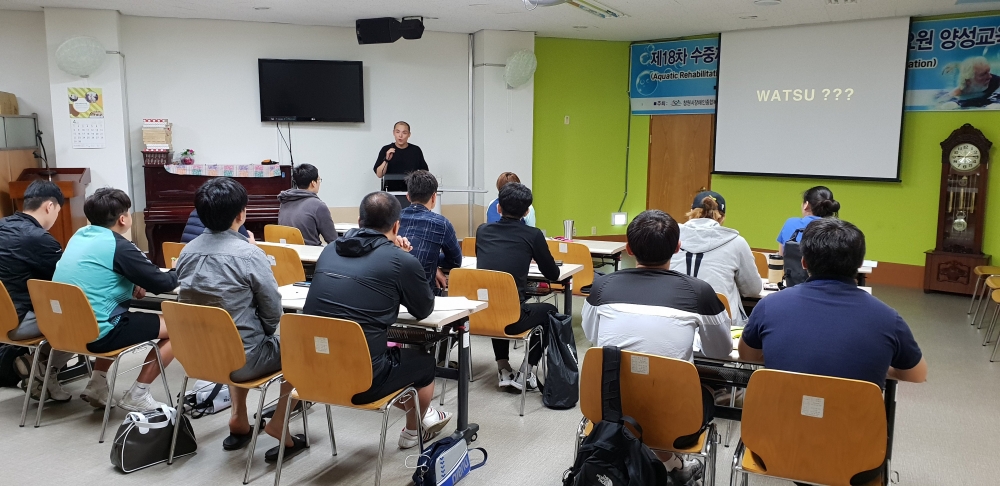 지난 4월 28일(토)과 29일(일) 2일간에 걸쳐 제18차 수중재활운동 Basic Watsu 전문요원 양성교육이 복지관에서 실시되었습니다.